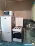 Кухонный гарнитур, холодильник, микроволновка, стиральная машина, две кровати с матрасами, шкафы, стол, пылесос. Пластиковые стеклопакеты.