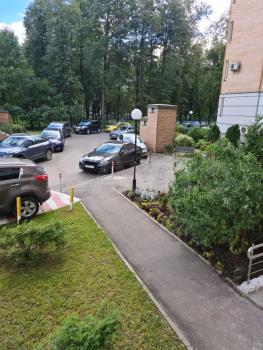 Придомовая территория благоустроена: много парковочного пространства во дворе дома, площадки для игр, въезд под шлагбаум. В подъезде дежурит консьерж, видеонаблюдение внутри подъездное и придомовой территории. Под домом имеется подземный гараж.