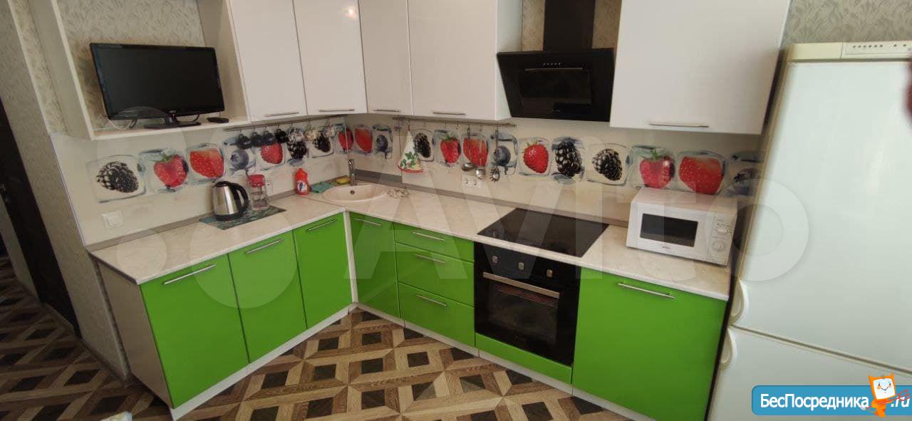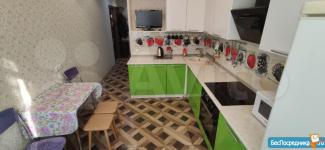 На кухне пол ламинат, кухонный гарнитур с техникой: СВЧ печь, электрическая плита и чайник, духовой шкаф, вытяжка, установлены фильтры для воды, вместительный двухкамерный холодильник, телевизор, обеденная зона. В комнате пол ламинат, в гостевой зоне удобный раскладывающийся диван в полноценное двуспальное место, большой телевизор, мебельная стенка с двумя вместительными шкафчиками для одежды и других вещей, и удобными полочками для хранения, журнальный столик на колесиках. В спальной зоне – большая удобная кровать КингСайз с матрасом размером 180Х200 см для сна и удобным местом для хранения постельного белья. Гостевая зона отделена от спальной зоны декоративной перегородкой с витражами. Выход из комнаты на просторный балкон, где можно сушить вещи после стирки (сушилка имеется). Совмещенный санузел, пол и стены плитка, ванна и современная стиральная машинка. Оборудованная прихожая с большим зеркалом от пола до потолка, вместительная гардеробная комната. Имеется гладильная доска и утюг для удобства. На этаже 4 квартиры с общим коридором, чистый подъезд с консьержем , грузовой и пассажирский лифты.