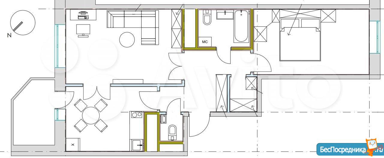 3) Дизайнерский ремонт (см. фото планировки и проекта). Два санузла. Гардеробная. Разные сценарии освещения. Скоростной интернет (выделенная линия и wi-fi). Теплый пол.