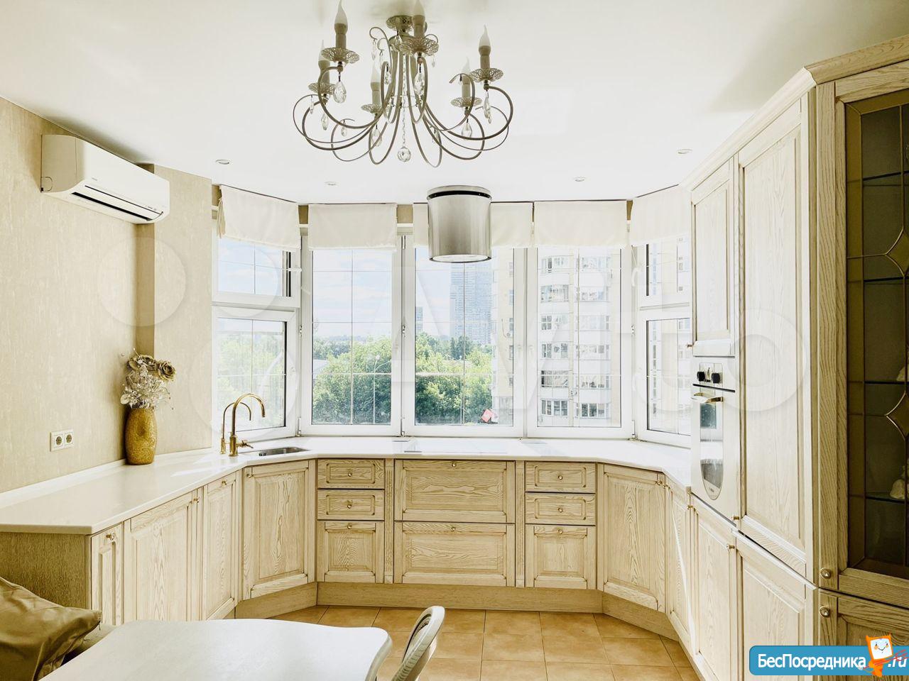 Кухня-эркер из массива ясеня сделана по индивидуальному дизайн-проекту, вы можете любоваться природой из окна, когда готовите еду, а не «стоять в углу или у стены», как в традиционных планировках. Кухня укомплектована дорогой встроенной техникой- холодильник, посудомоечная машина, стиральная машина, духовой шкаф, варочная плита, островная вытяжка, СВЧ, чайник, мультиварка, кухонный комбайн. Так же укомплектована посудой.