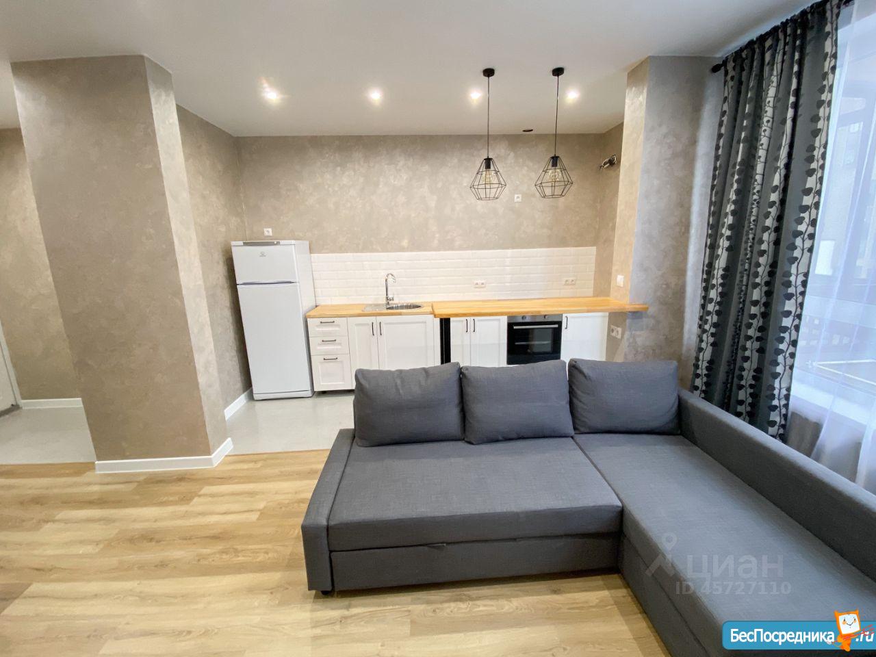 В квартире есть всё необходимое для комфортного проживания: современная мебель в комнатах и на кухне, кондиционер для жарких дней, холодильник, телевизор и стиральная машина. Планировка позволяет удобно разместить мебель и технику, а в совмещённом санузле имеется ванна для релаксации после долгого дня. Окна выходят на улицу, поэтому в квартире всегда светло и уютно.