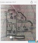 45 кв.м., кухня 12 кв.м. с остекленной лоджией.