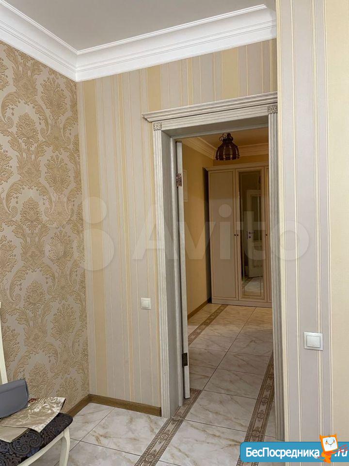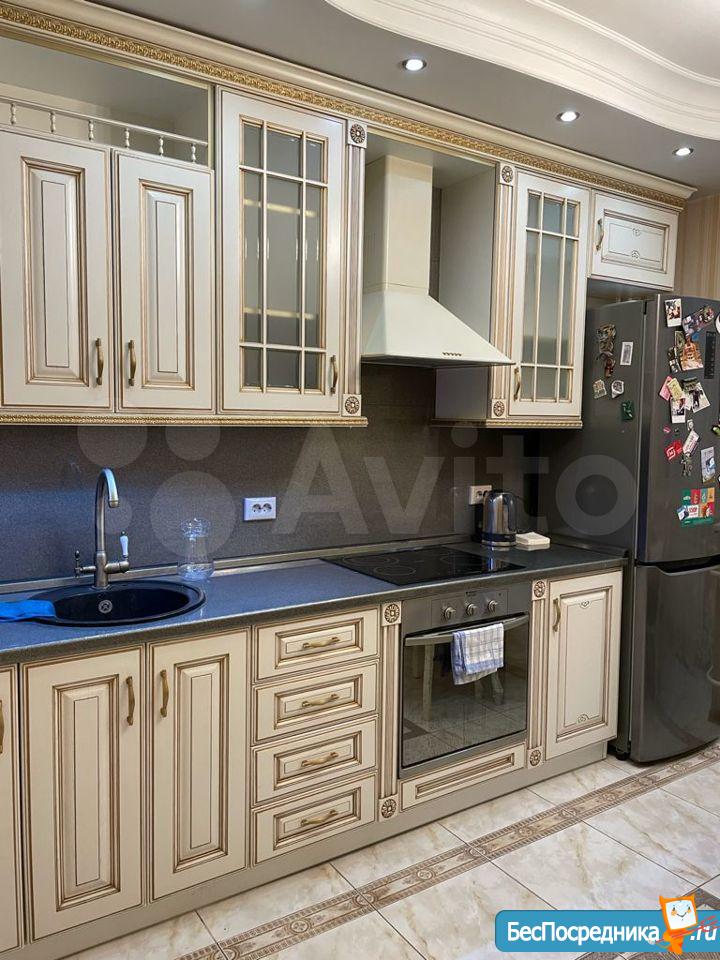 Кухня оборудованна встроенной техникой (холодильник, духовка, микроволновка, варочная панель, вытяжка, посудомоечная машина, стиральная машина, фильтр для воды и телевизор). Стол рассчитан на 4 человек и раскладывается. Жилая комната разделена на две зоны жилую и гостиную, оборудована кондиционером и имеет двухспальную кровать с новым матрасом. Гостиная зона с раскладывающимся диваном и телевизором. В коридоре установлены встроенные шкафы с полками под потолок. Имеется темная комната.