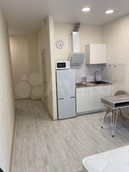 Студия новая, после евро ремонта. Новая мебель, кухонный гарнитур, плита, духовка, стиральная машина.