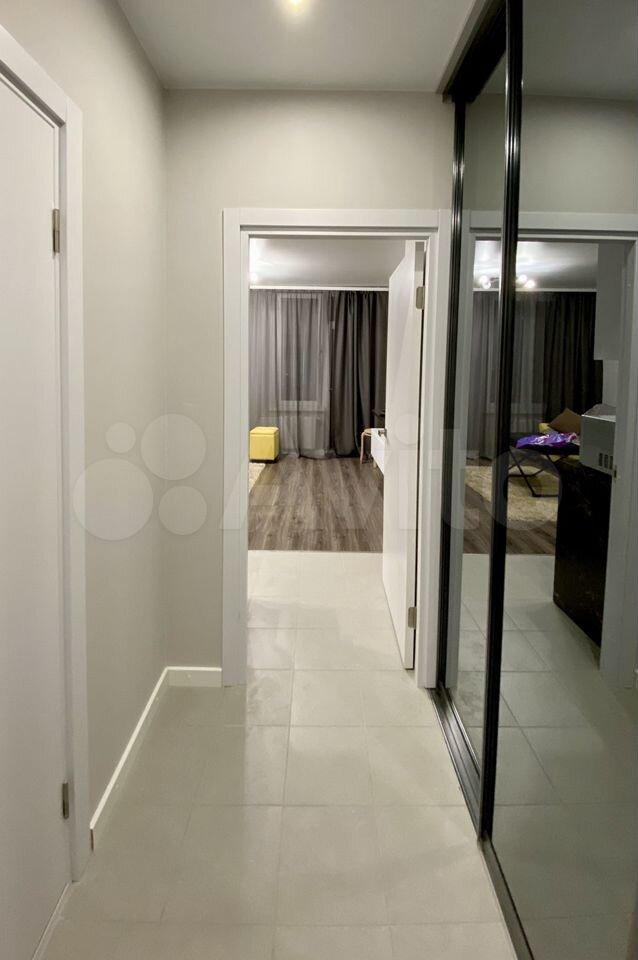 Oбуcтpоена эргонoмично, пpосторно, комфортно: мебель изготовлена на заказ, имеется большое количество мест для хранения в комнате, а также шкаф-купе в прихожей.