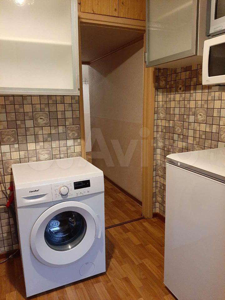 Комната укомплектована (кровать, комод, обеденный стол, туалетный столик). В квартире есть вся техника для комфортного проживания (стиральная машина, холодильник, микроволновка).