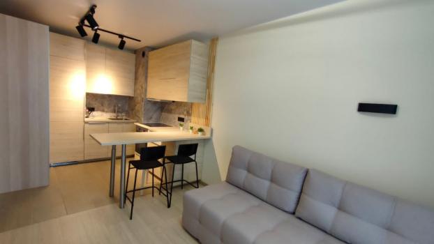 К вашим услугам: 1 жилая комната - 12 кв.м, кухня - столовая - 10.6 кв.м.