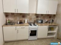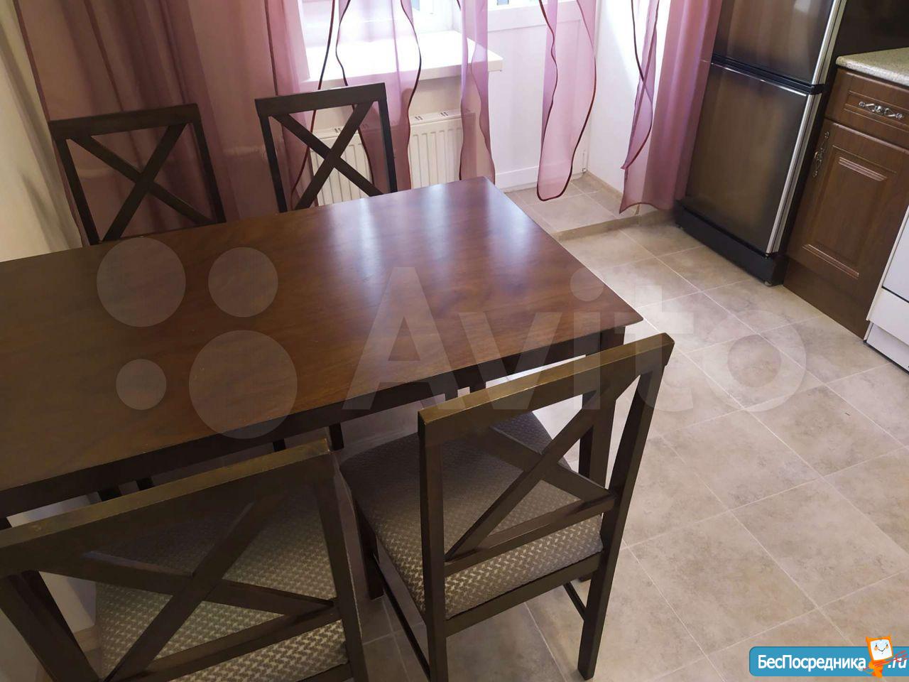 На кухне - холодильник, плита индукционная, кухонный гарнитур-новые; стол, стулья.