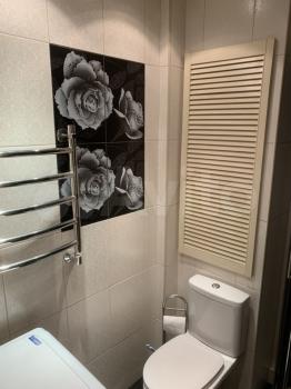 Квартира располагает всем необходимым для комфортного проживания: широкий диван-кровать для 2 персон, рабочий компьютерный стол, TV, обеденный стол, 2 больших вместительных платяных шкафа, кухонный гарнитур оборудован бытовой техникой (двухкамерный холодильник, микроволновая печь, варочная панель, духовой шкаф), посудой и столовыми приборами. Санузел совмещенный: душевая кабина, стиральная машина, сушилка.