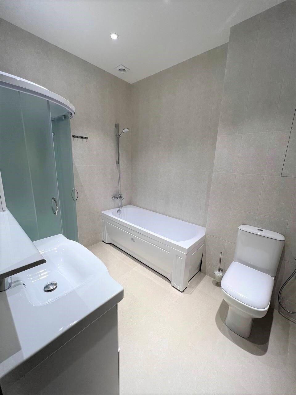 - Есть вся необходимая мебель и бытовая техника, включая стиральную, посудомоечную машину, кондиционер, холодильник, телевизор,теплый пол.
