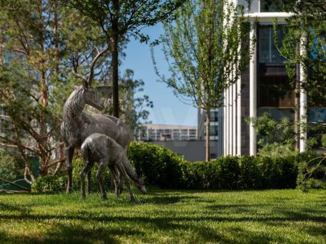 Общее парковое пространство квартала — 5,5 га, включающий в себя большой фонтан, аллеи для прогулок, крупномерные деревья, арт-инсталляции, водные глади, детские площадки , воркаут-зона и шезлонги, создают гармоничное сочетание жизни на природе со всеми преимуществами мегаполиса.