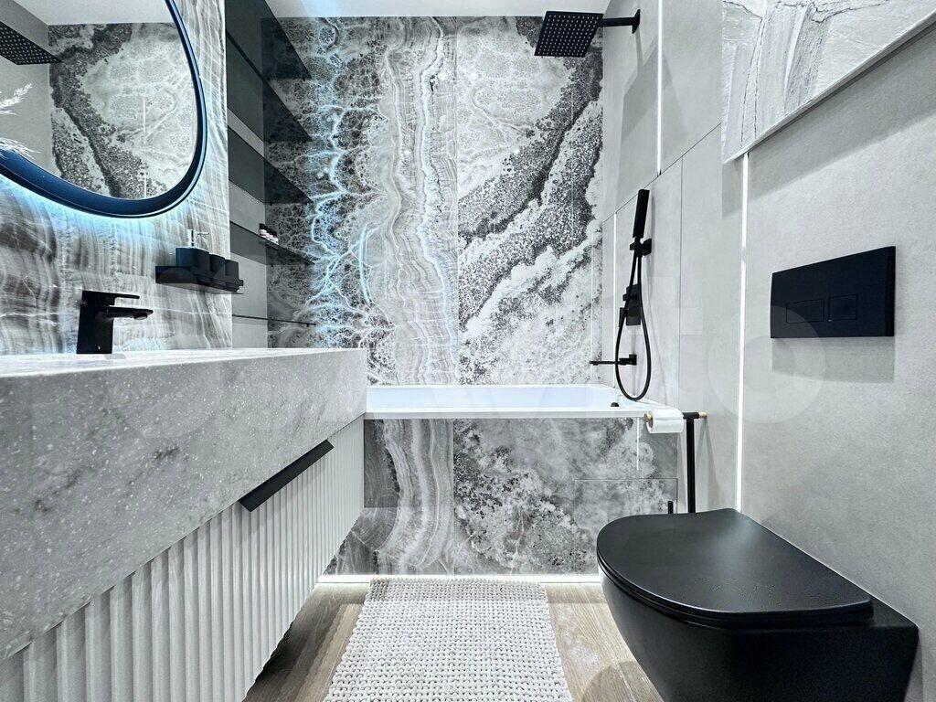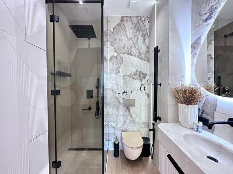 В квартире выполнен дизайнерский ремонт. Спланирована кухня-гостиная, мастер-спальня с ванной комнатой и гардеробной, гостевой санузел, холл.
