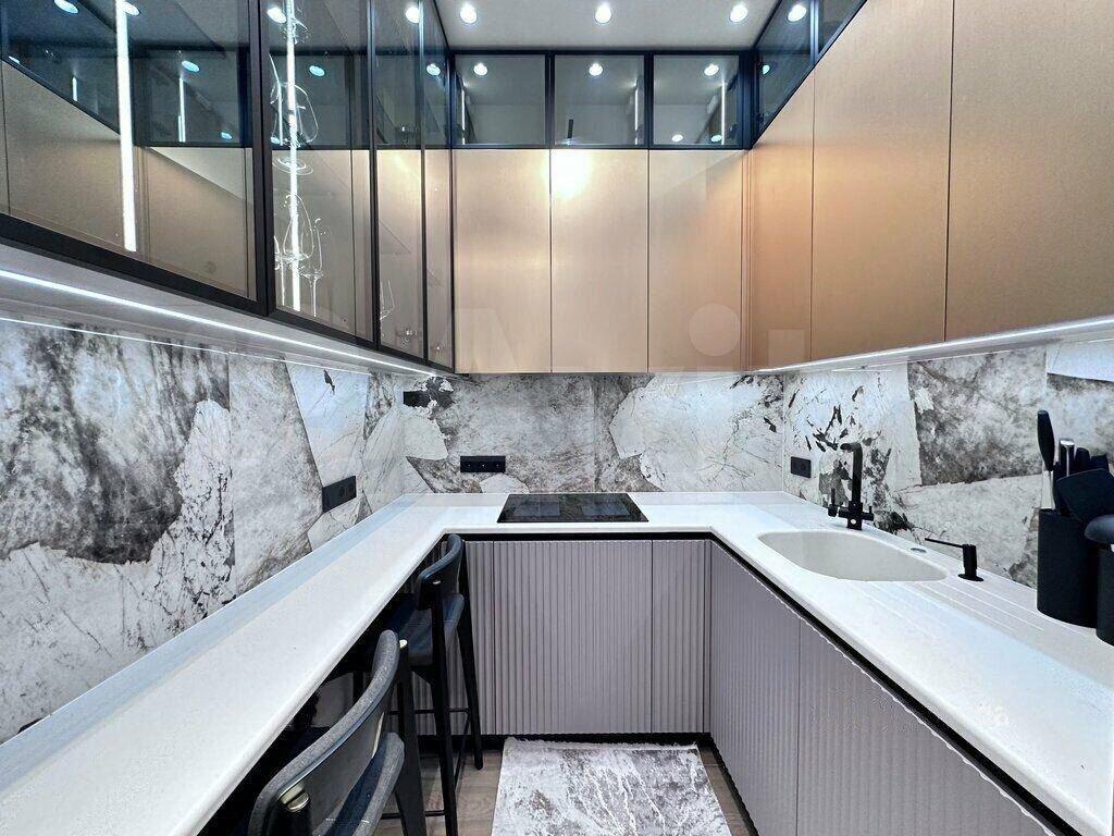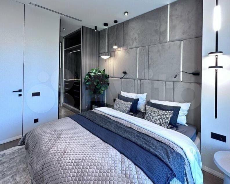 Квартира оборудована Фанкойлами, с щелевыми решетками на потолке, обеспечивающие комфортный климат внутри квартиры. Теплые полы, для вашего комфорта в холодное время года. Просторная гостиная со столовой зоной. Спальня, с кроватью 180х200 см, зона кровати с велюровым изголовьем до потолка, со своей гардеробной комнатой и с/у с ванной. Отдельно спальня с кроватью 160х200 см. Отдельная гардеробная комната со встроенными шкафами. Отдельный с/у с душевой и постирочным шкафом, включающим сушильную и стиральную машинку Еlесtrоluх. Кухонная зона с барной стойкой и встроенной кухонной техникой: Кофемашина, Микроволновка, Посудомоечная машина, Инверторная варочная плита, Духовой шкаф, Холодильник и Морозильник, Вытяжка. Итальянские глянцевые фасады, подсветка рабочей зоны. Каменная столешница и стол выполнен на заказ. Большое кол-во сценариев подсветки по всей квартире. Голосовой помощник Алиса, Электрокарнизы, Итальянские шторы, высокоскоростной Wi-Fi, большое кол-во шкафов, 3 ТВ с большими диагоналями (до 75’’) и 400 каналами.
