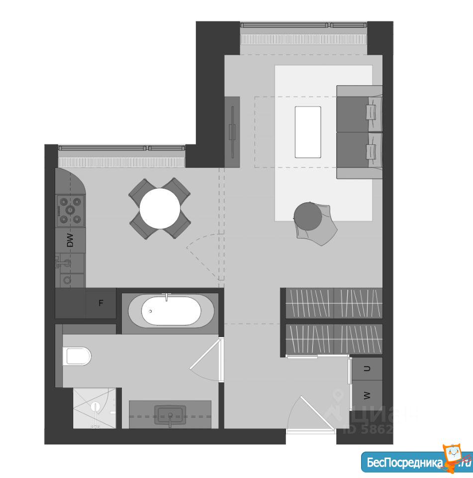 Квартира расположена на 39 этаже с общей площадью 58 кв.м и имеет прекрасные видовые характеристики.