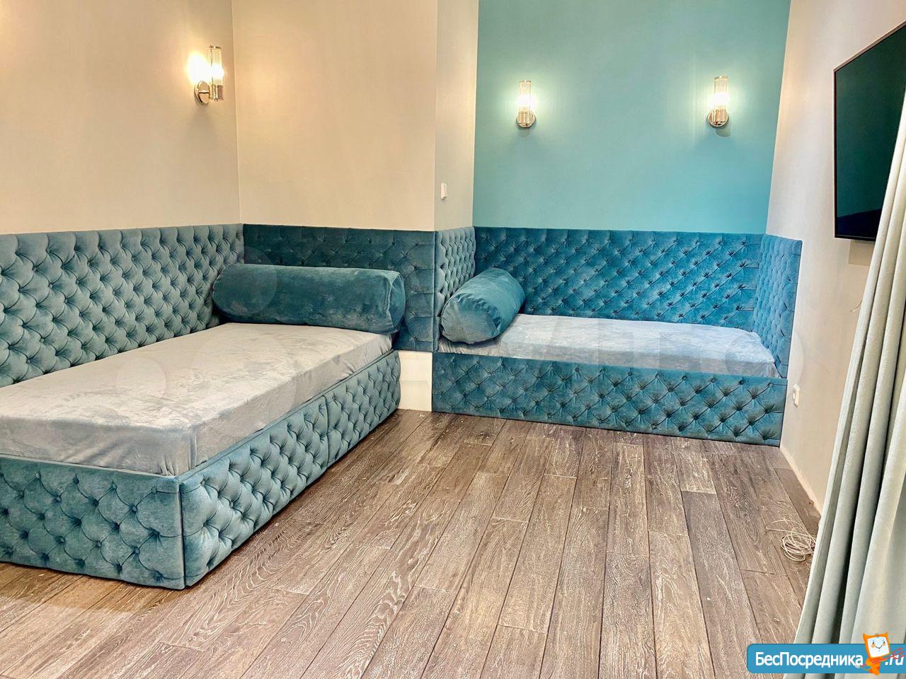 2 встроенных дивана-тахты по индивидуальному заказу, которые имеют в основе спальные матрасы - полноценные спальные места. Все новое, квартиру делали для себя, но переехали в другую страну.
