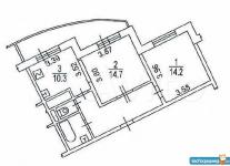 Формат евродвушки: большая кухня-гостиная 25 метров и спальная комната 15 метров.