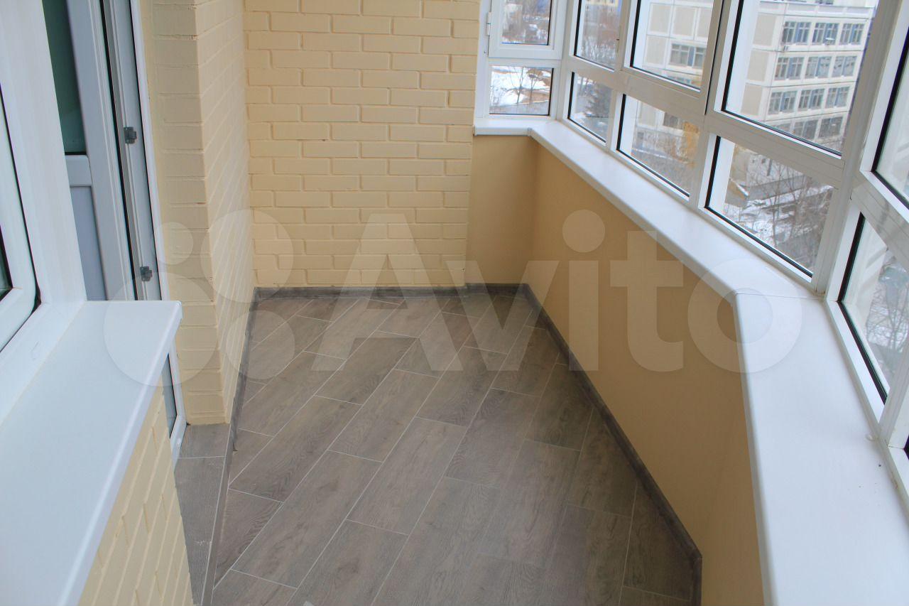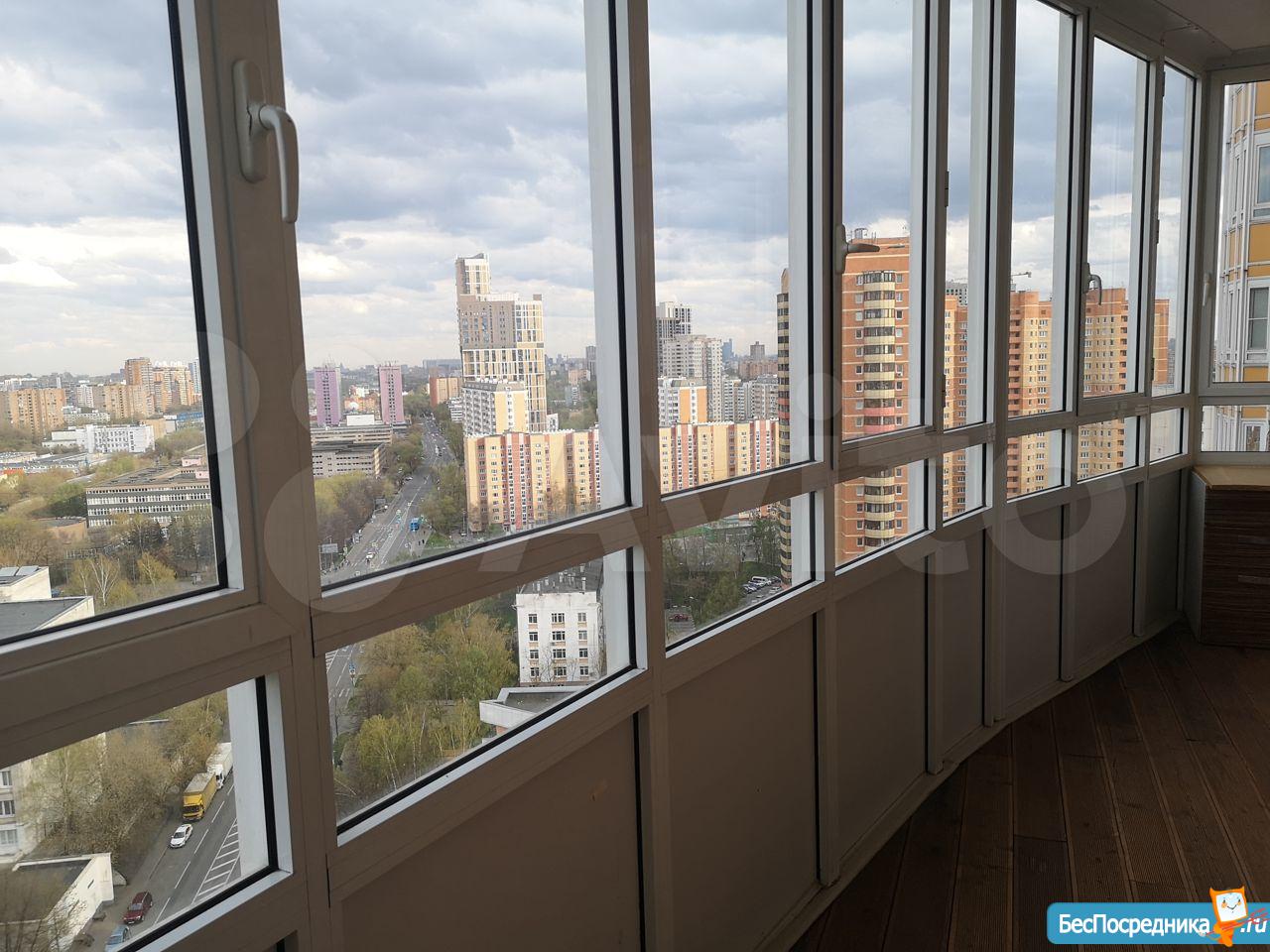 Большой застекленный балкон с красивым видом.