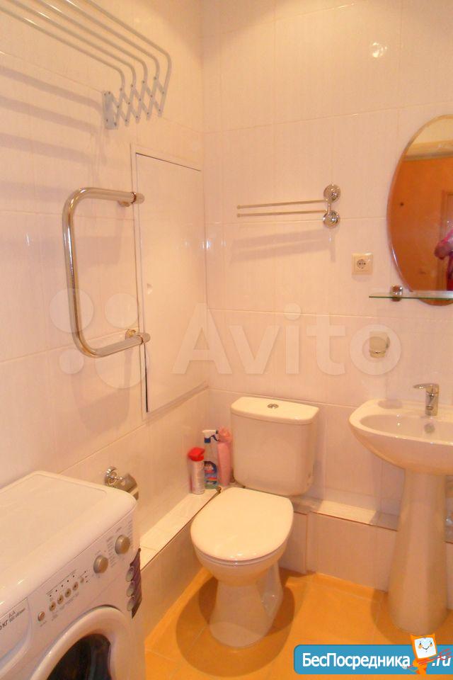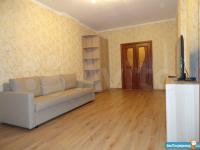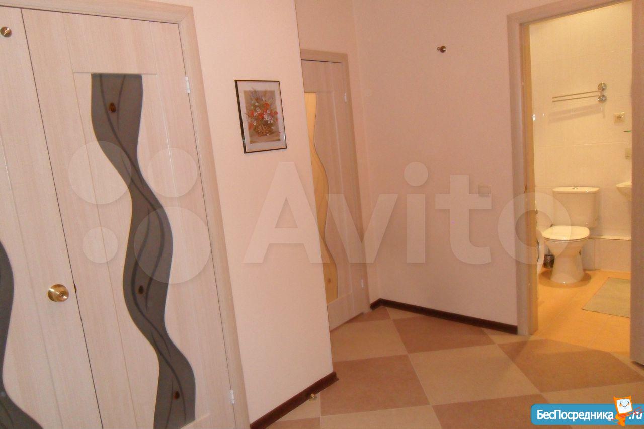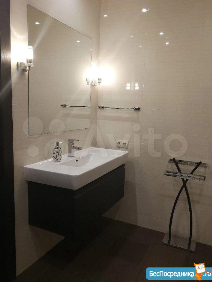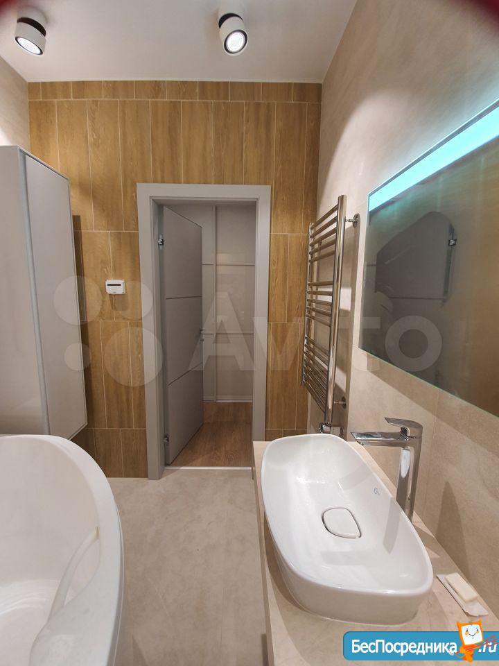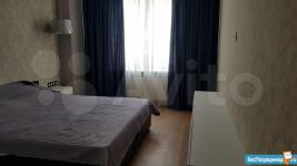 Площадь 65 м2: Кухня + зал(студия) 28 м2; 1-я Комната 14 м2, 2-я комната 16 м2. Лоджия – 4 м2. Два сан узла, в одном ванная, в другом душевая кабинка. В зале диваны, стол, стулья, кухонный гарнитур со встроенной новой техникой. В одной спальне диван, шкаф, тв, во второй спальне - спальный гарнитур с отличным ортопедическим матрасом.