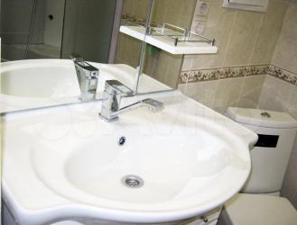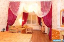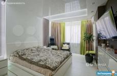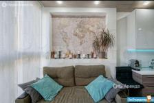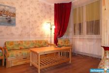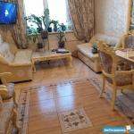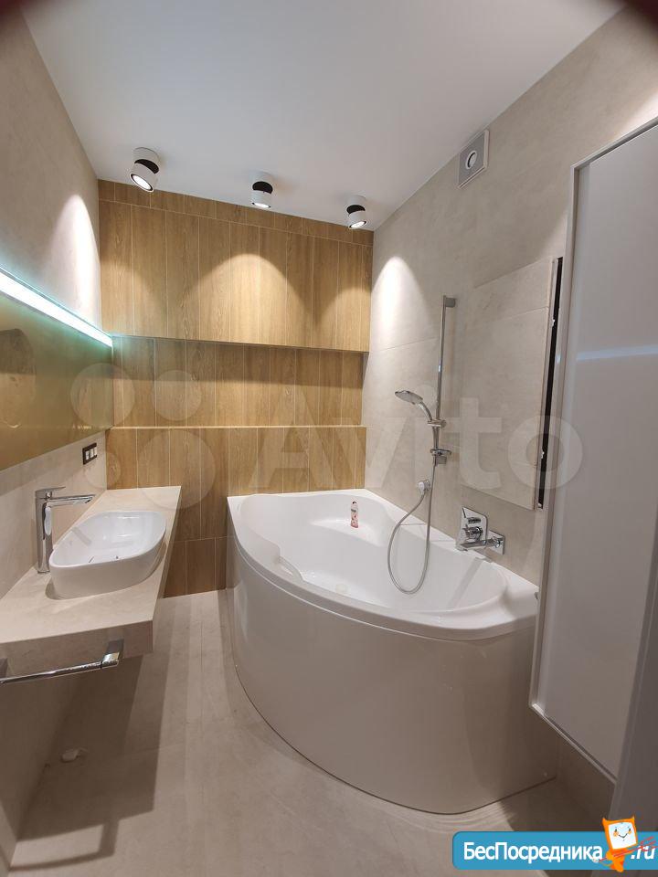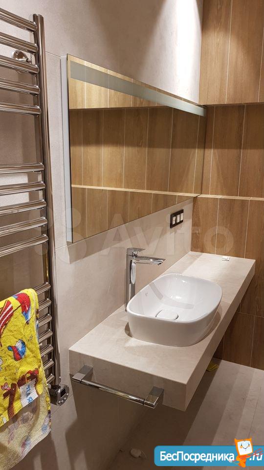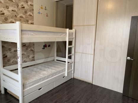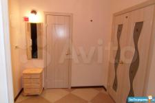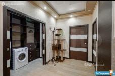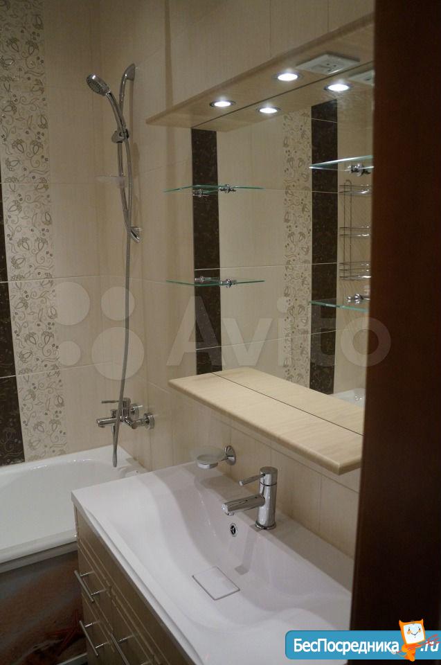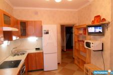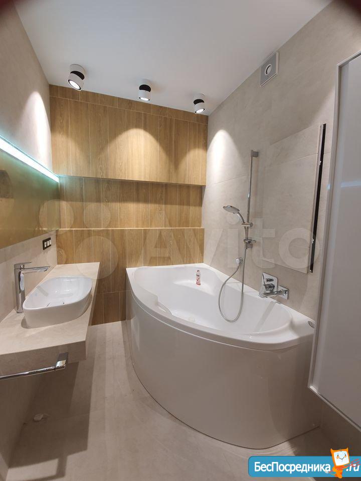 Площадь 65 м2: Кухня + зал(студия) 28 м2; 1-я Комната 14 м2, 2-я комната 16 м2. Лоджия – 4 м2. Два сан узла, в одном ванная, в другом душевая кабинка. В зале диваны, стол, стулья, кухонный гарнитур со встроенной новой техникой. В одной спальне диван, шкаф, тв, во второй спальне - спальный гарнитур с отличным ортопедическим матрасом.
