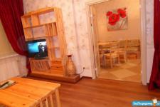 Полный комплект качественной бытовой техники, света, сантехники и мебели. В каждой функциональной зоне и на кухне по телевизору. Встроенная многофункциональная варочная поверхность, духовка и вытяжка. Большой холодильник NoFrost, СВЧ. Вся мебель из сосны. В том числе: 2 дивана (раскладываются), 3 кресла (одно из них - кресло-кровать), 2-спальная кровать. Кабельное ТВ и интернет.