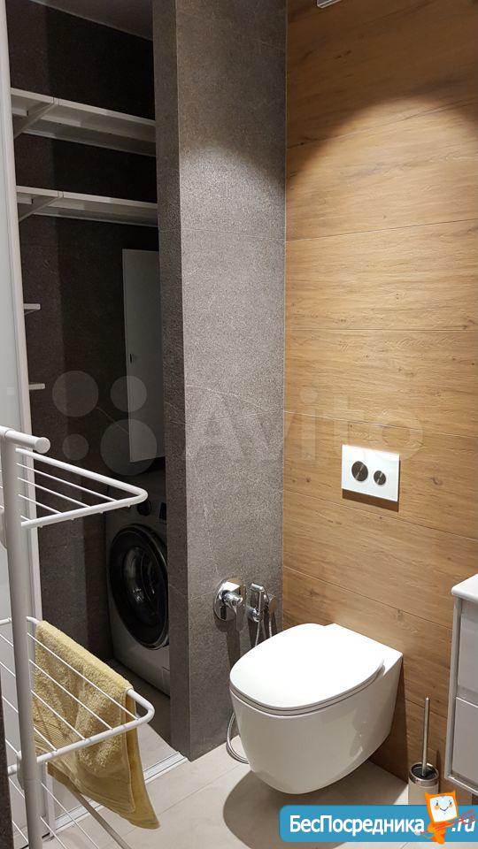 В комнате современный 4К телевизор 55" соседствует с раритетной аудио-системой (обожаемая мной и нелюбимая соседями Радиотехника S-90 83-го года). Кухня оборудована всей необходимой техникой: встроенные варочная панель, духовой шкаф и посудомоечная машина, большой холодильник. Санузел совмещенный, вместо ванной просторная душевая кабина, в санузле есть стиральная машина и водонагреватель на случай отключения горячей воды.