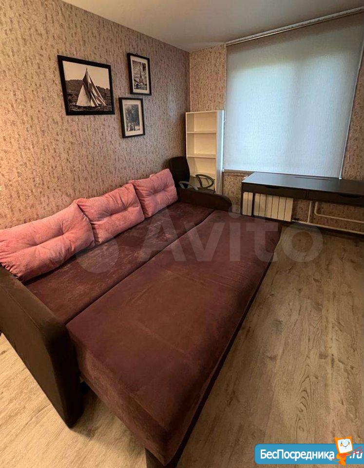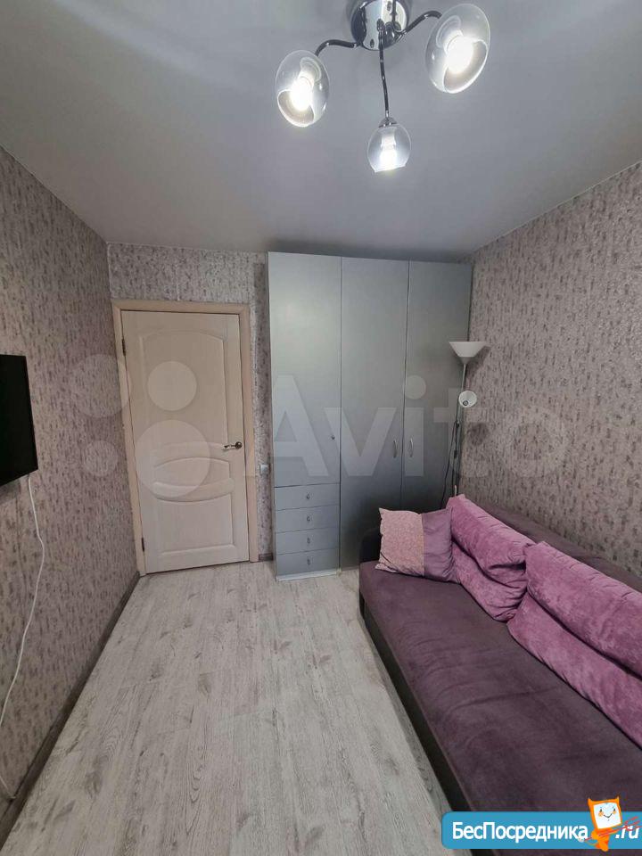 Квартира после свежего ремонта. Кухня полностью оборудована. Балкон застеклен. Сан.узел совмещённый. В комнате кровать, тумба и шкаф. Дополнительная мебель обсуждается.