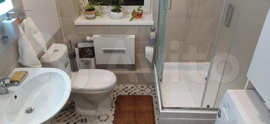 Окно выходит на солнечную сторону по утрам, так что для этого есть плотная штора )Санузел совмещённый, просторная душевая.