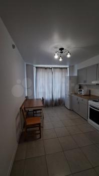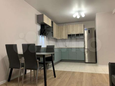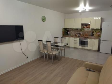 Квартира евродвушка. Площадь 43,8 кв.м. Комната-спальня -13.3 кв.м. Кухня-гостинная - 21.8 кв.м. Вся необходимая для проживания мебель и бытовая техника в наличии. В кухне-гостинной имеется французский балкон.