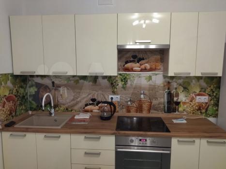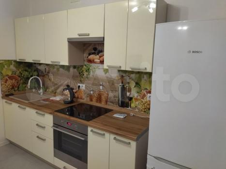 Функциональная кухня со встроенной техникой: холодильник, посудомоечная машина, индукционная варочная панель, духовой шкаф, микроволновая печь и вытяжка. В наличии чайник, кондиционер и стиральная машина.