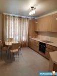 Все комнаты изолированы. Просторная кухня в 12 кв.м. Два санузла, в том числе полноценная ванная комната. Полы ламинат и плитка.