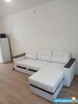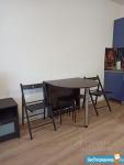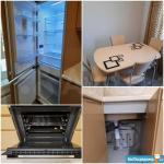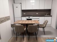 Кухня: отдельностоящий вместительный холодильник, духовка, ПММ 45 см, встроенный кран с питьевой водой (обратный осмос), большой раздвижной стол, 4 мягких стула.