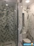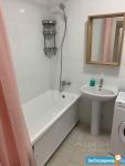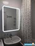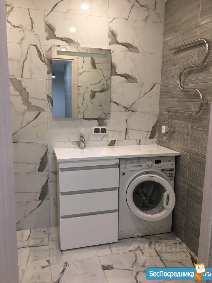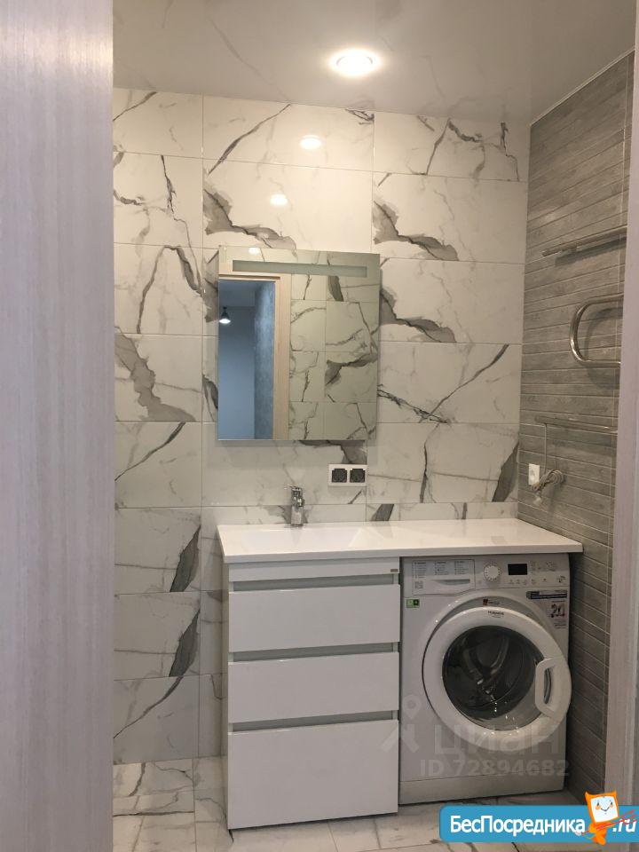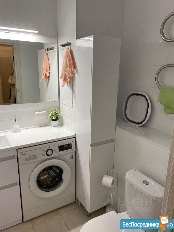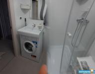 1-й с/у с ванной: стиральная машина с функцией сушки белья, освещаемое зеркало, 2 широкие полки.