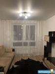 На всех окнах светлые шторы блек аут, светлая тюль.