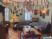 Много прикольного декора в стиле этно и другое. В гостиной комнате сейчас под потолком гирлянды, а не ленточки.