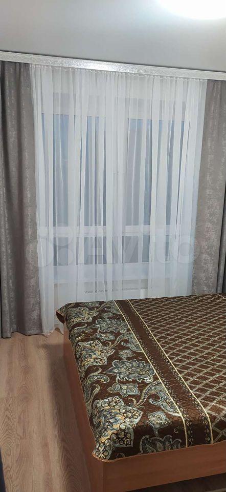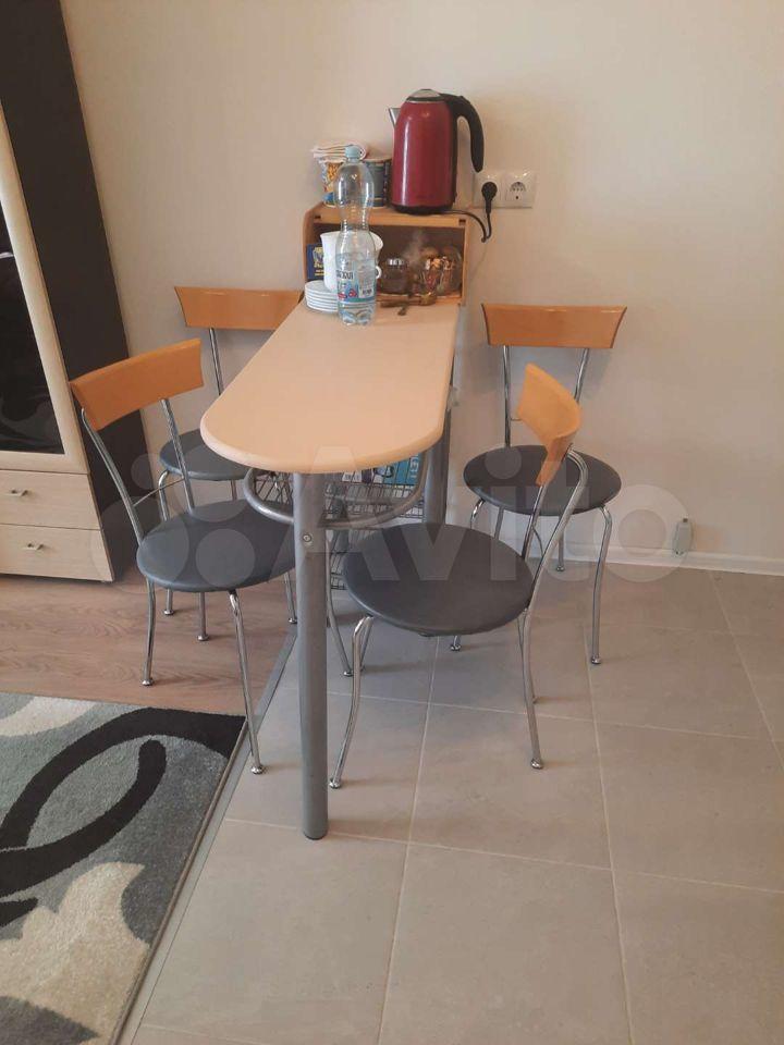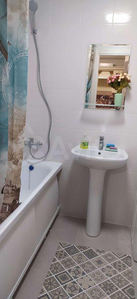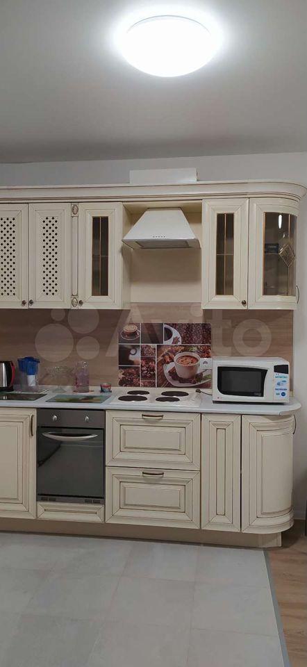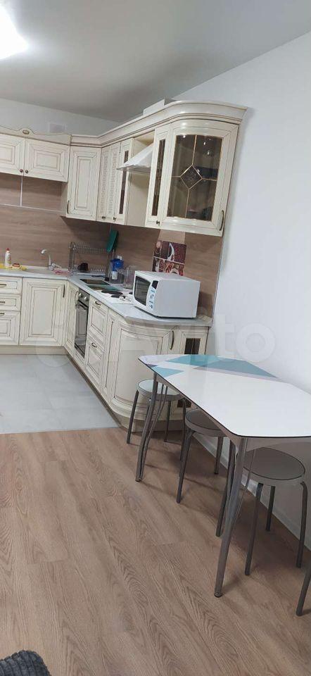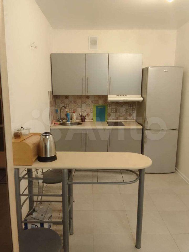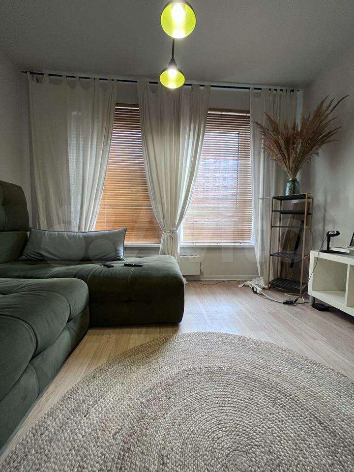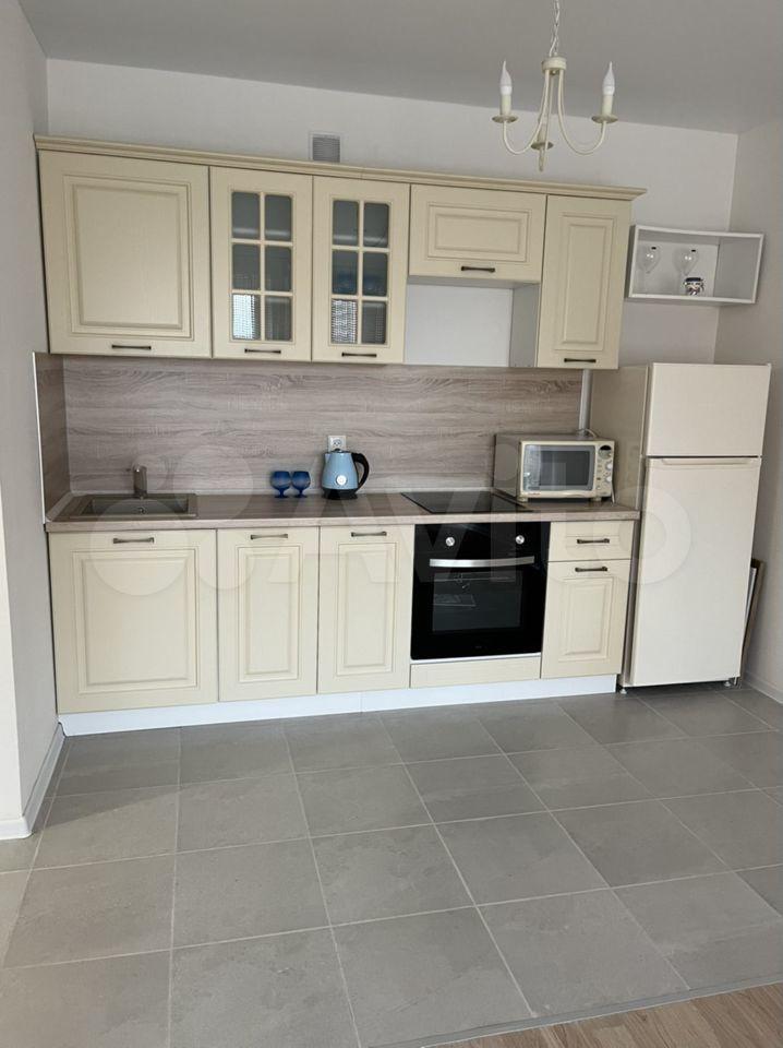 Квартира оборудована кухонным гарнитуром, мебелью и бытовой техникой. Есть телевизор, холодильник, микроволновая печь, плита, стиральная машина, вытяжка, духовой шкаф, диван-кровать, шкаф для вещей. Полы ламинат и плитка. Окна выходят в благоустроенный двор.