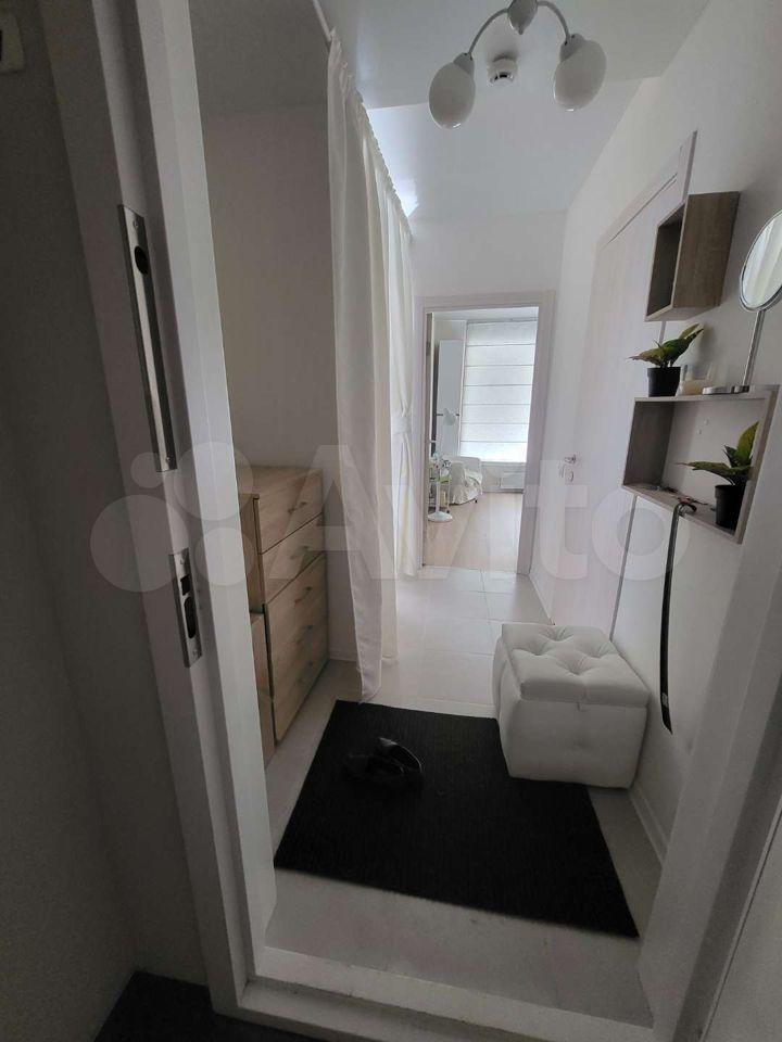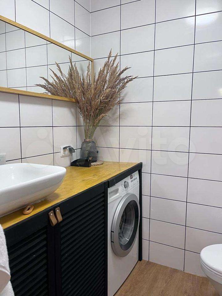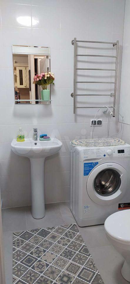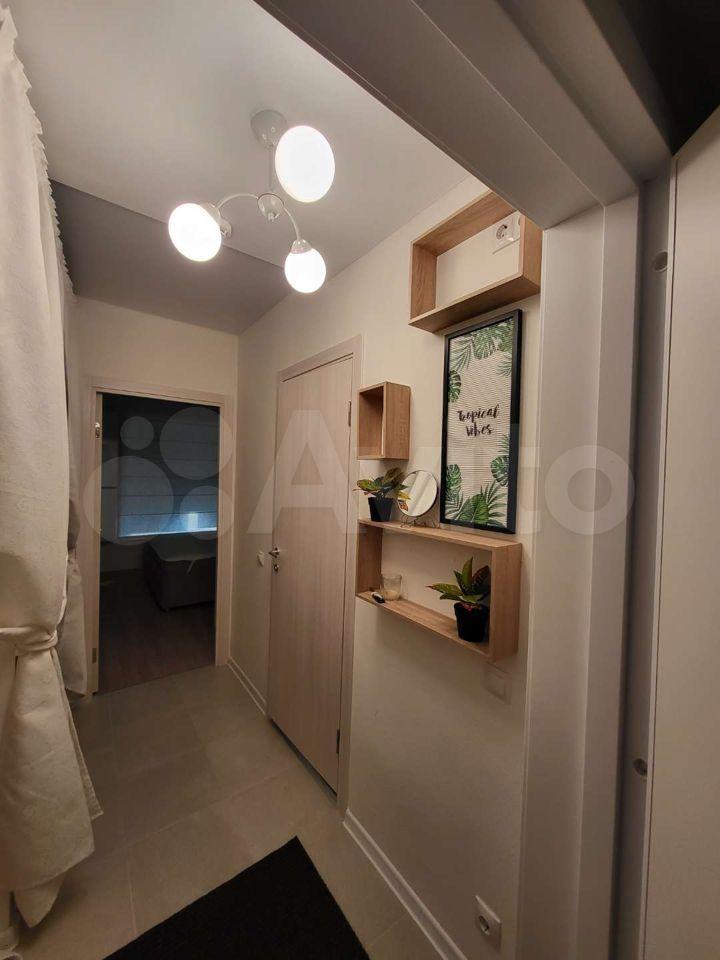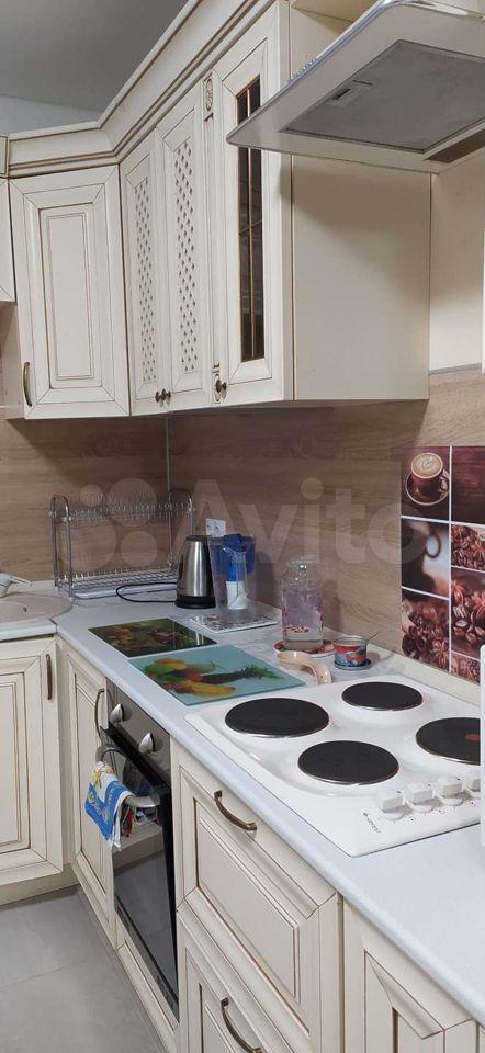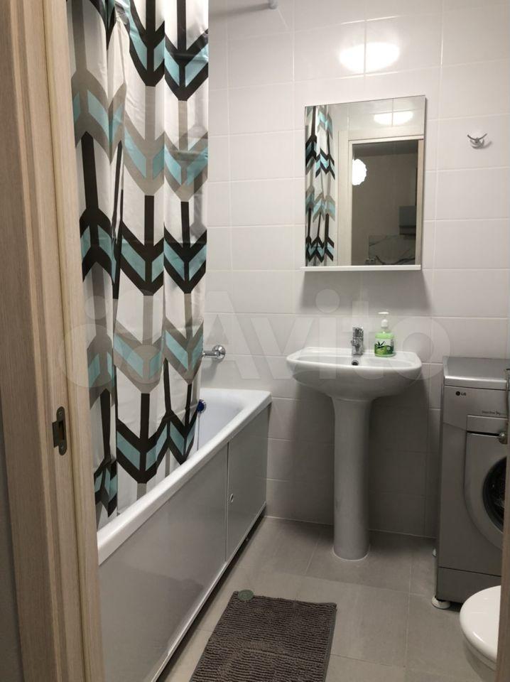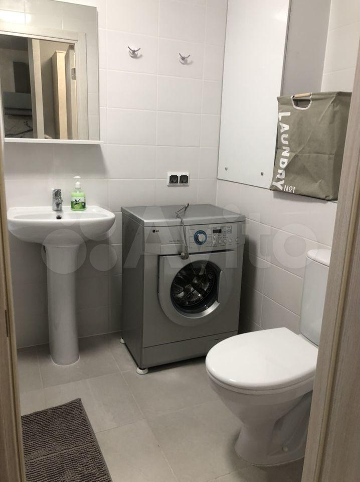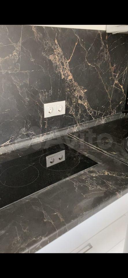 Квартира оборудована кухонным гарнитуром, мебелью и бытовой техникой. Есть телевизор, холодильник, микроволновая печь, плита, стиральная машина, вытяжка, духовой шкаф, диван-кровать, шкаф для вещей. Полы ламинат и плитка. Окна выходят в благоустроенный двор.