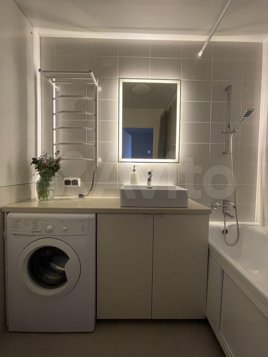 В квартире два санузла, в одном из которых находится ванная и стиральная машина.