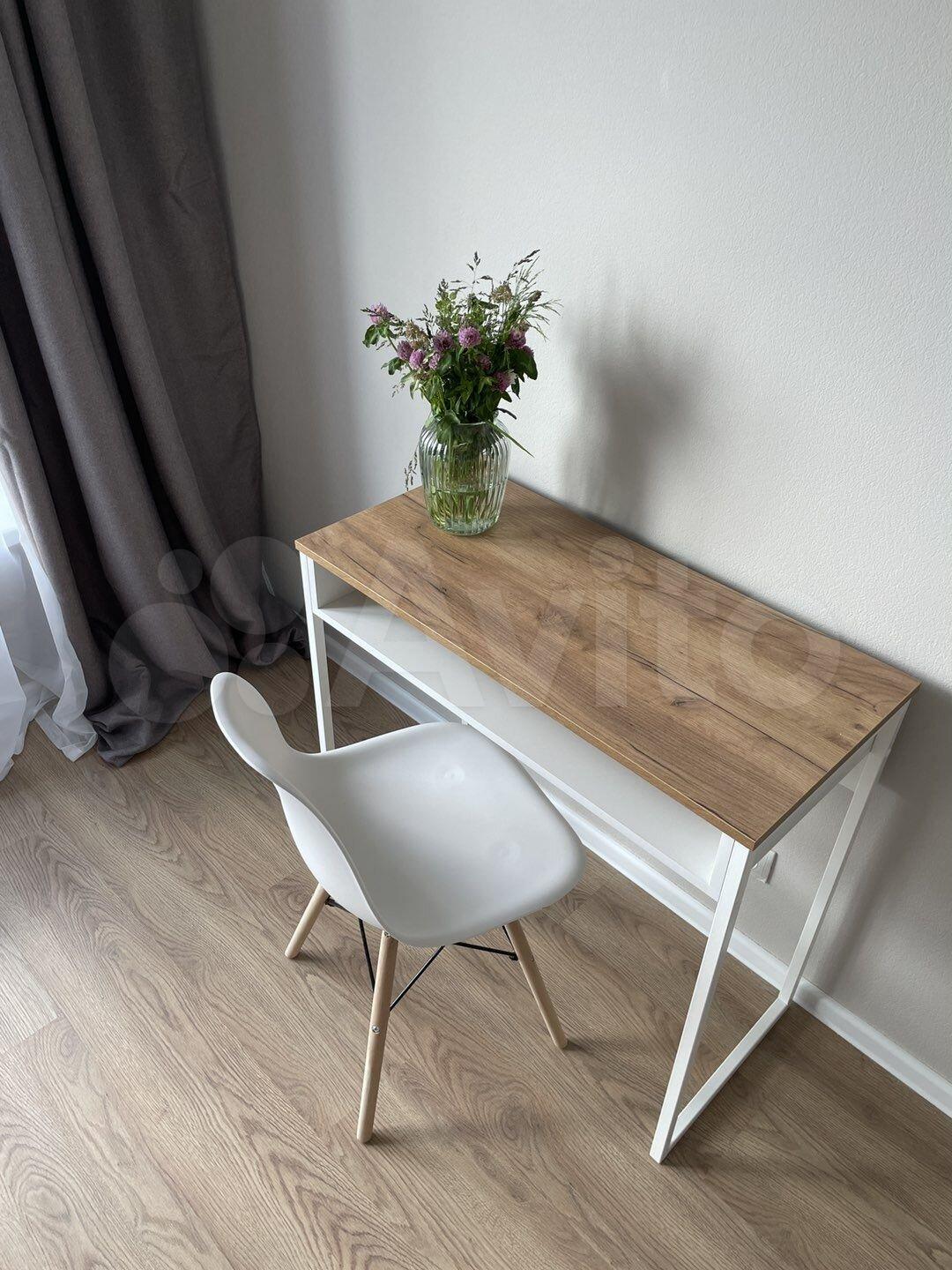Одна комната свободна - можно сделать детскую, вторую спальню или устроить там рабочую зону. В комнате есть полноценный шкаф, письменный стол и стул.