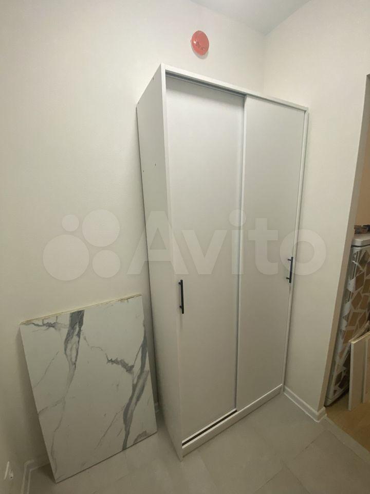 В комнате большой шкаф, сушка для одежды, компьютерный стол, стул, большое окно с красивым видом. В квартире живет девушка 35 лет с сыном 11 лет (не собственники).