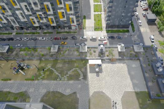 Развитая инфраструктура с концепцией город в городе - на первых этажах кафе, рестораны, пабы, кальянные, булочные, салоны красоты, фитнесс залы, йога+массаж, есть все сетевые продуктовые магазины. Отдельная закрытая для посторонних двор-площадка для прогулок на крыше торгового комплекса - свой выход.