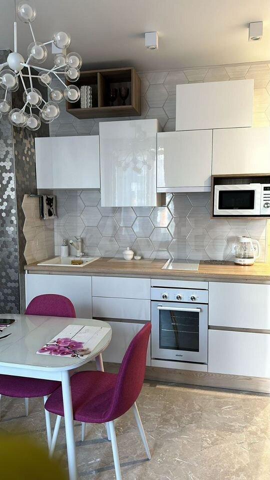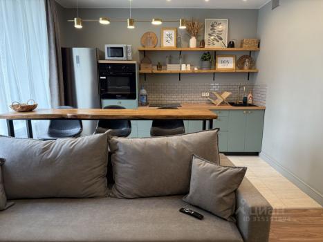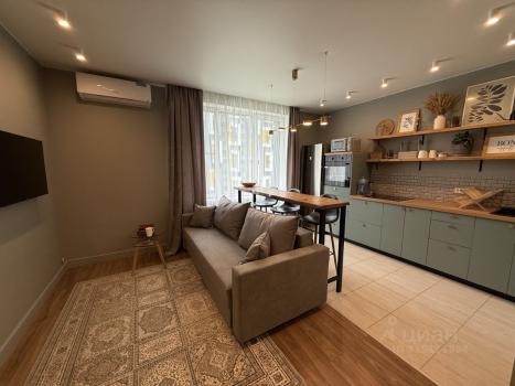 Квартира выполнена в дизайнерском стиле, что создаёт уникальную атмосферу. Высокие потолки (2.78 м) добавляют пространства и света. В квартире есть всё необходимое для комфортного проживания: кондиционер, холодильник, телевизор и стиральная машина. На кухне и в комнате установлена современная мебель. Ванная комната оборудована полноценной ванной, а окна выходят во двор, поэтому в квартире тихо и уютно. Также есть лоджия, где приятно проводить время.