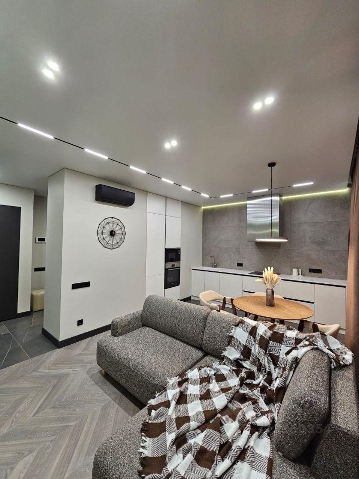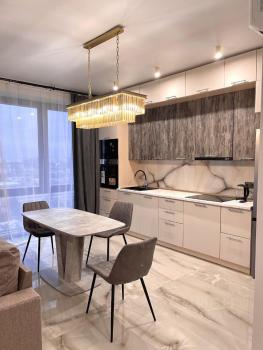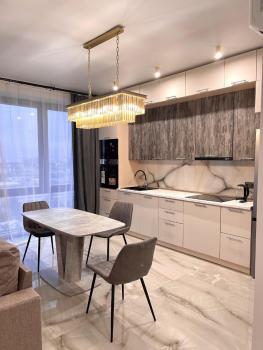 Новая квартира с ремонтом и мебелью сдается на длительный срок с машиноместом в подземном паркинге.