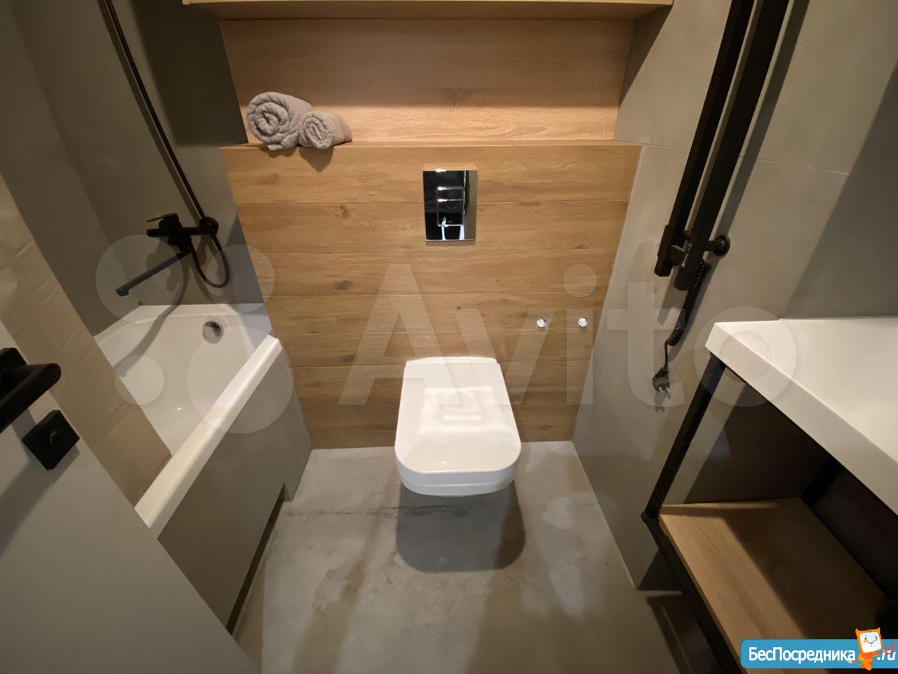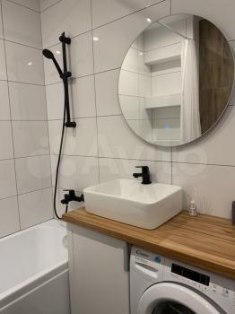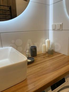 - Просторный санузел с полноценной ванной (что тоже редкость для студий; hand-made столешница??);