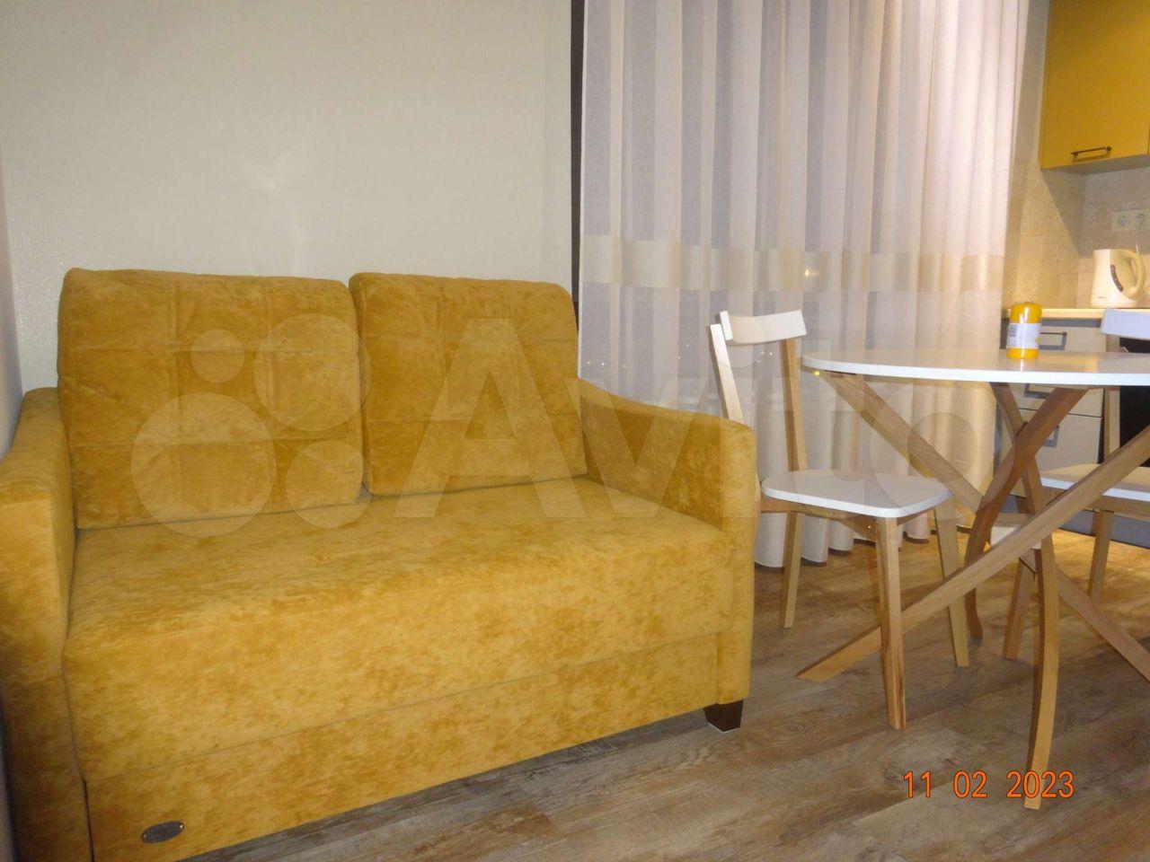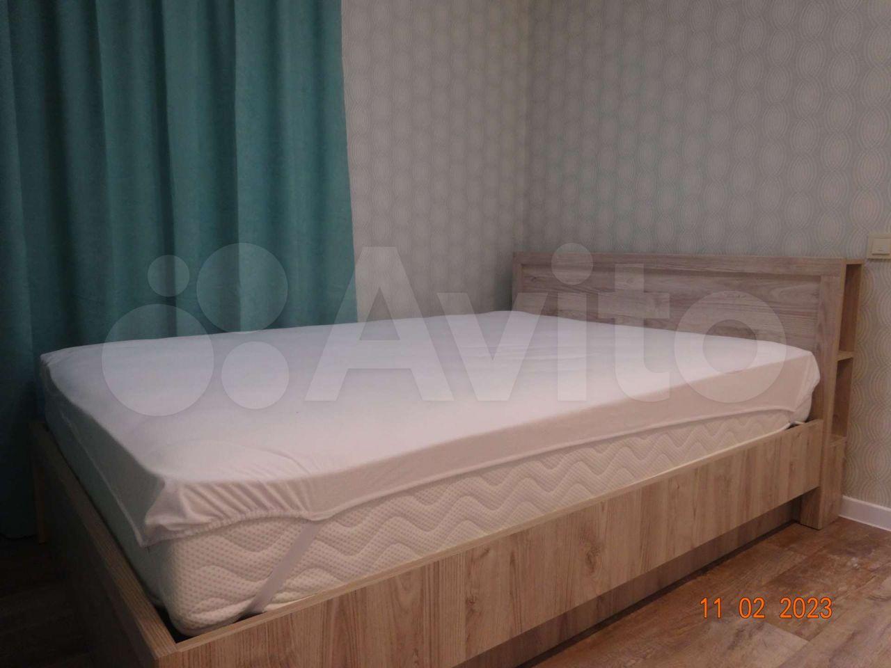 - Полностью меблирована, отдельно отмечу удобное спальное место (140*200, ортопедический матрас). Обычно в студиях ставят диваны, а это неудобно и для сна, и для ежедневного использования;