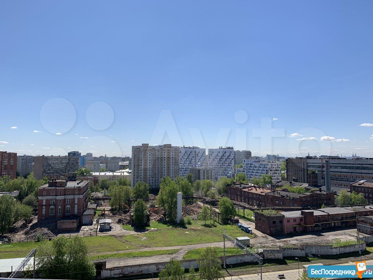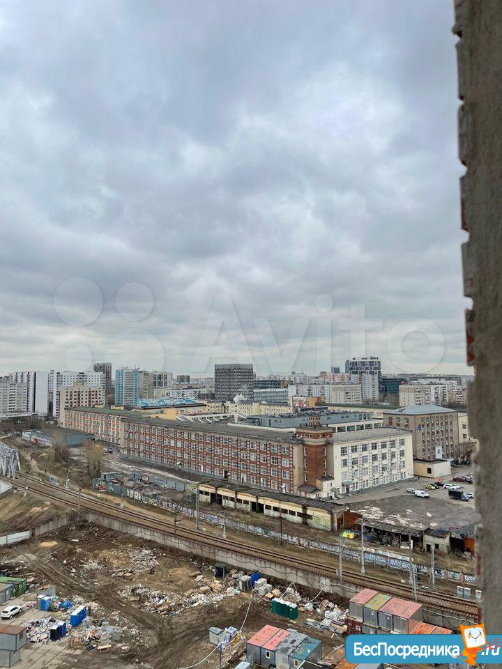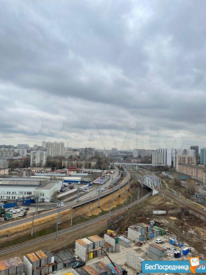 Хороший вид из окна на Москву и останкинскую телебашню, внизу за территорией ЖК железная дорога по которой ходят тихие современные поезда, с закрытым окном их не слышно