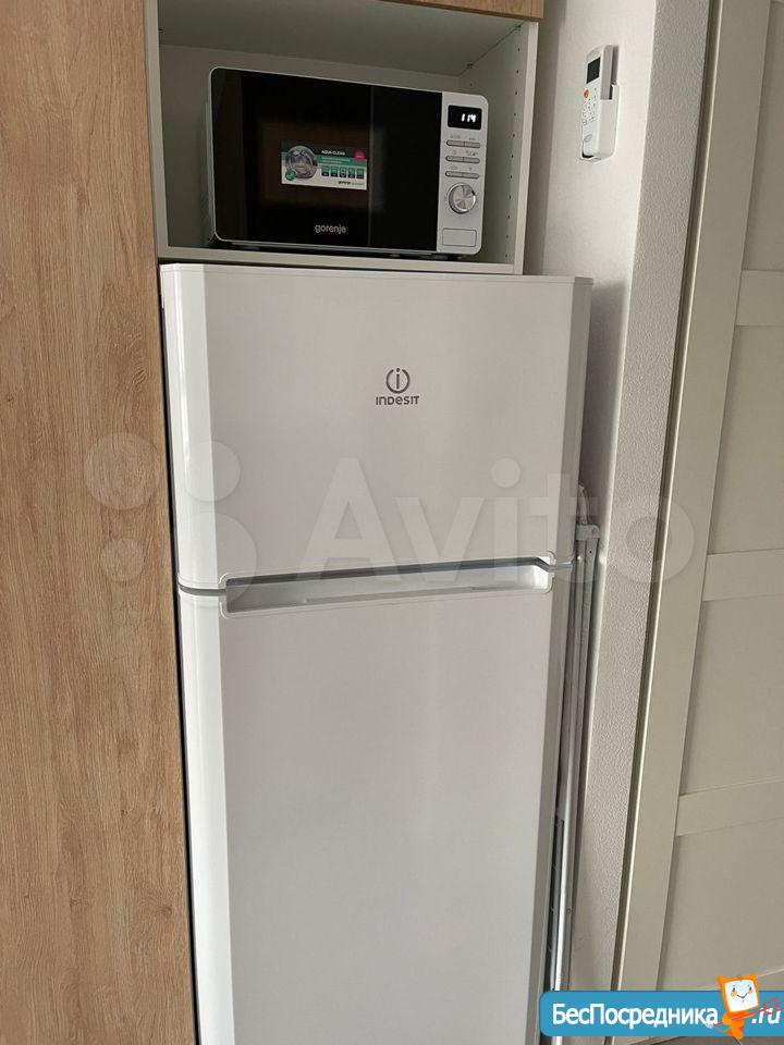 Вся необходимая мебель и бытовая техника: Холодильник, Духовой шкаф, Индукционная плита, Чайник, Микроволновка, Стиральная машина, Гладильная доска, Сушилка, Утюг, Телевизор, Wi-Fi роутер, посуда. А также помимо обеденного стола имеется отдельный рабочий стол; двухместная кровать 160x200; диван раскладываемый двухместный; три просторных шкафа.