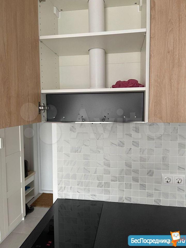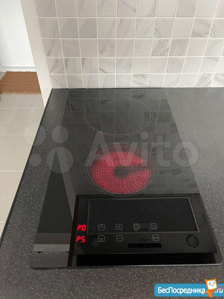 Кухня: микроволновка, плита, вытяжка, духовой шкаф, холодильник No frost.