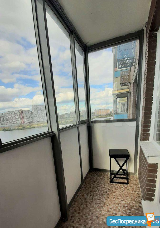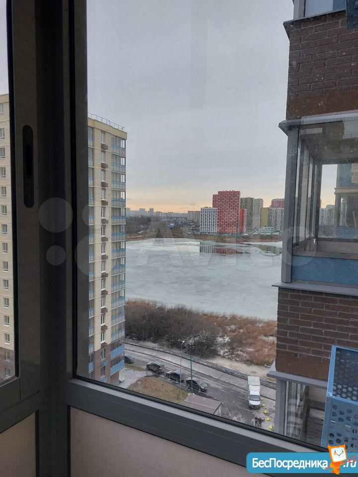 Окно спальни выходит прямиком на озеро, прекрасный вид, другие два окна выходят во двор, не на стройку. Имеется балкон на кухне с видом во двор .