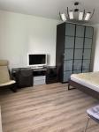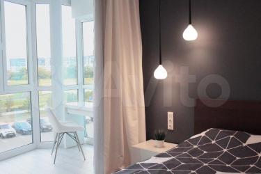Квартира СТУДИЯ, изолированная спальная комната с 2-х спальной большой кроватью и шкафом, просторная кухня совмещённая с уютной зоной отдыха с мягким диваном, вместительная изолированная гардеробная со шкафом, санузел с чугунной ванной и стиральной машиной, изолированный просторный балкон с подогреваемым полом подготовлен для использования в качестве кабинета.